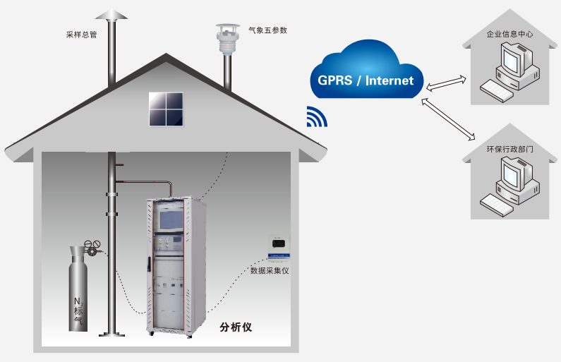 數(shù)據(jù)采集和傳輸設(shè)備:主要由一體式工控機(jī)、數(shù)據(jù)處理軟件組成,實(shí)現(xiàn)監(jiān)測數(shù)據(jù)的實(shí)時(shí)采集、存儲(chǔ)、計(jì)算,并通過網(wǎng)絡(luò)傳輸數(shù)據(jù)至環(huán)保監(jiān)控平臺(tái)。