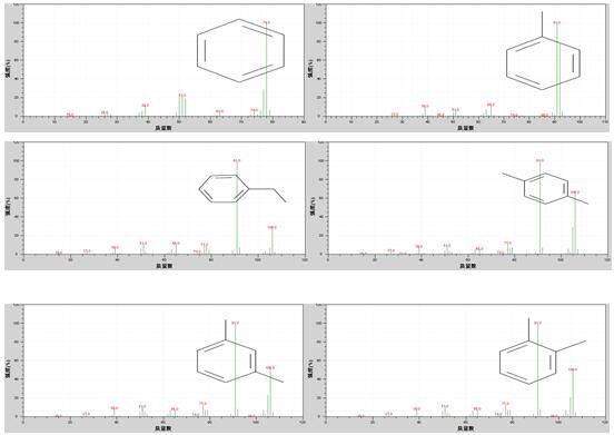 1.苯 2.甲苯 3. 乙苯 4. 對/間二甲苯 5. 鄰二甲苯